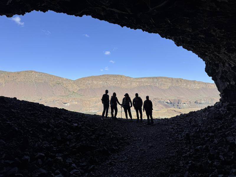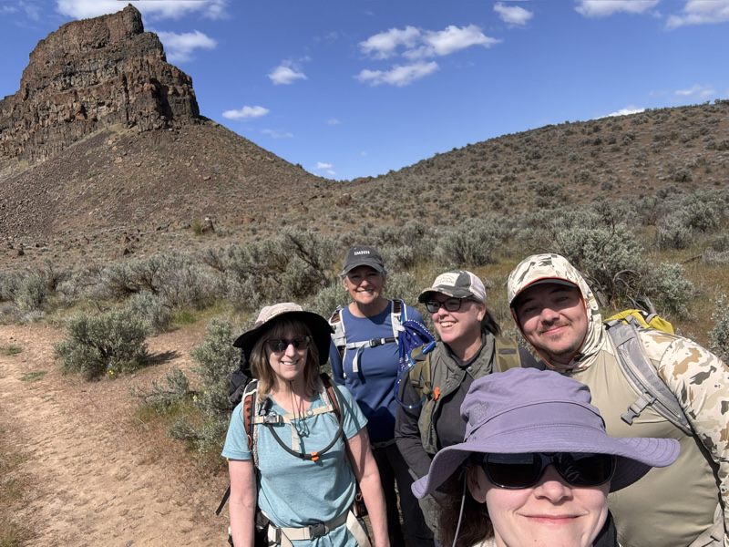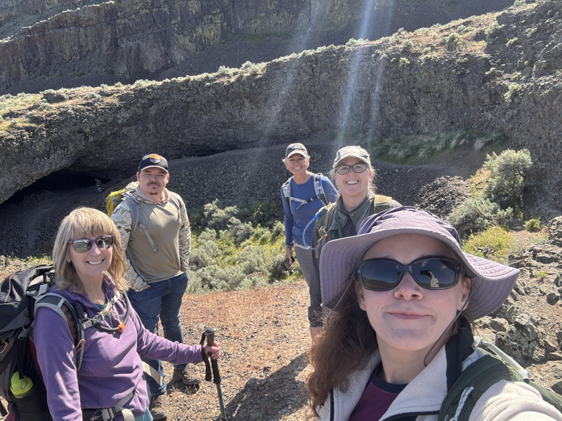 Five IMAC Northwest members enjoyed a beautiful spring day in the Columbia Basin with two hikes under sunny skies and a comfortable 65°F breeze. The first hike explored Lake Lenore Caves, where the group traced the trail above the alkaline lake and ducked into ancient basalt caves carved by the catastrophic Missoula Floods. Wildflowers dotted the rocky terrain, adding color to the dramatic scabland scenery. From there, the group headed to Sun Lakes–Dry Falls State Park and picked up the Boy Scout Trail, following it into the park before completing a loop around Umatilla Rock. The route offered sweeping views of the coulée walls and ancient lakebed. The group stopped for lunch at Perch Lake, enjoying the stillness of the water framed by columnar basalt and scattered desert blooms. Unique rock formations and desert wildflowers made for a memorable outing and a perfect spring day in the scablands.​​​​​​​​​​​​​​​​